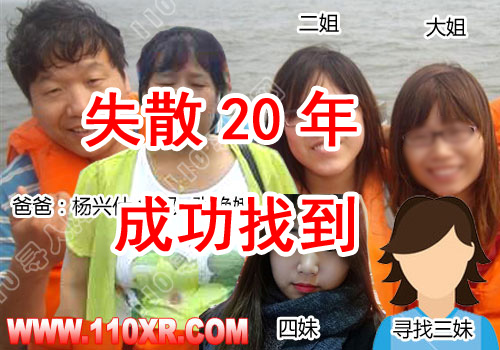 寻人启事:【好消息:20年前送养到河南的三妹找到了】三妹,名字可能叫李X霞(姓名不详),女,现年20岁,1997年8月16日出生于陕西省宝鸡市扶风县绛帐镇,父亲:杨某某,母亲:张某某。姐妹四人:大姐、二姐、送养的老三,四妹。